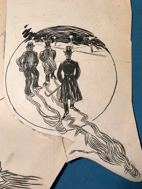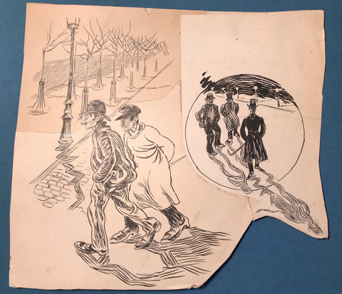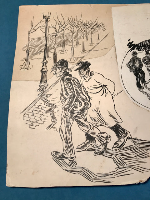 End of 19th Century - 1900 black ink, brush on pencil drawings, paper mounted on cardboard.